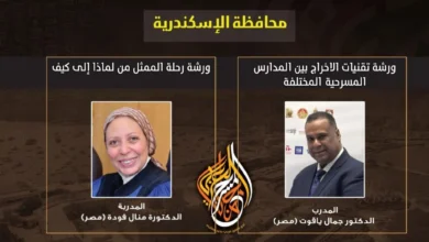 حنان الصاوي تنظم الهيئة العربية للمسرح عددًا من الورش التدريبية بمحافظة الإسكندرية، وذلك ضمن فعاليات مهرجان المسرح العربي الدورة…