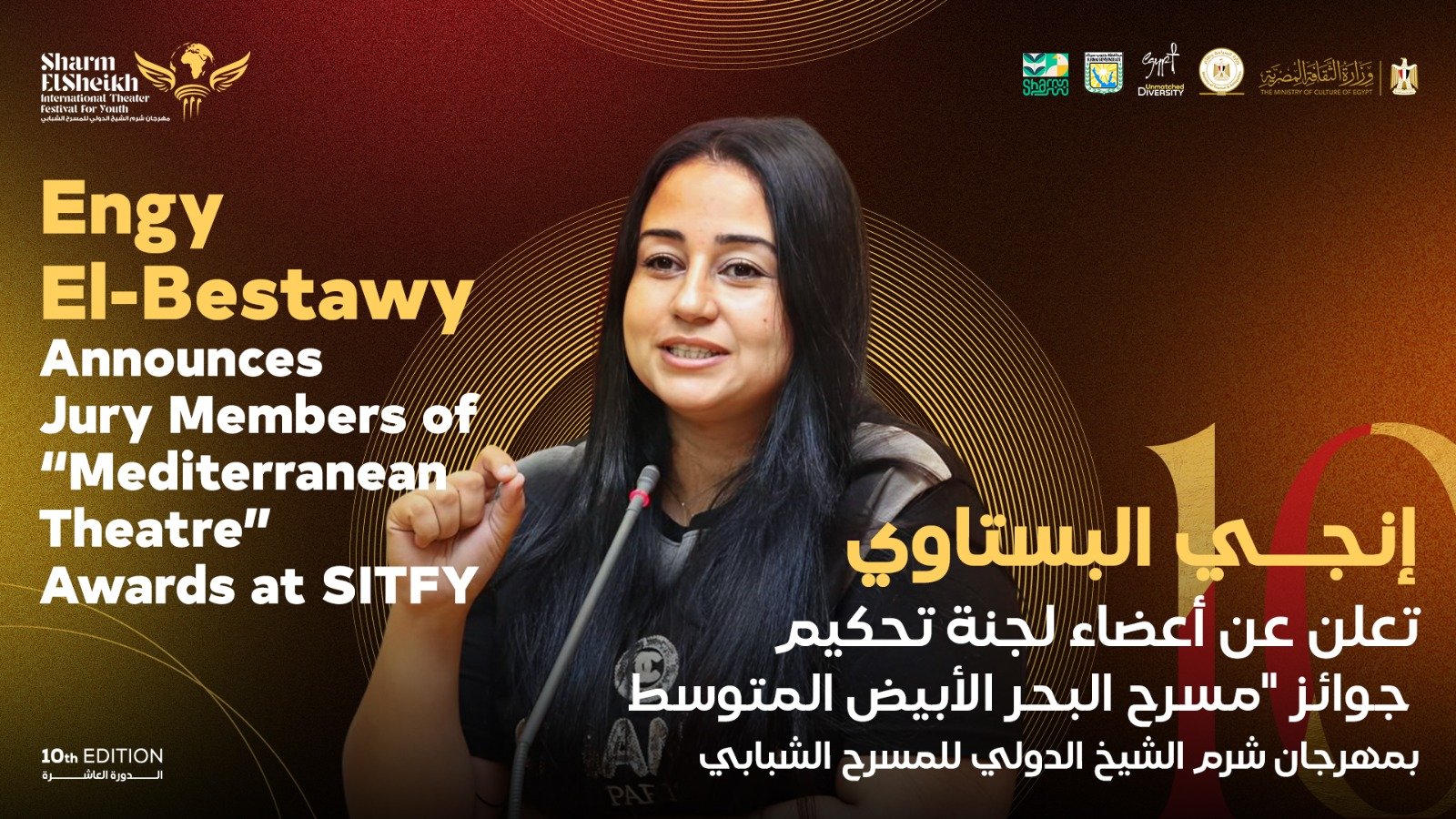 أعلنت الدكتورة إنجي البستاوي، المدير العام مهرجان شرم الشيخ الدولي للمسرح الشبابي، خلال المؤتمر الصحفي الخاص بإعلان تفاصيل الدورة العاشرة، برئاسة المخرج مازن الغرباوي، والمقرر إقامتها في مدينة شرم الشيخ خلال الفترة من 25 إلى 30 نوفمبر 2025، عن تشكيل لجنة تحكيم جوائز مسرح البحر الأبيض المتوسط، وهي مسابقة يطلقها المهرجان لأول مرة في تاريخه، بمشاركة نخبة من أبرز الأسماء في المشهد المسرحي التركي.