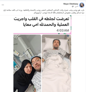 “يا رب، هو زوجي وحب عمري، وأنت الشافي المعافي. اشفِ زوجي وردّه لي سالمًا. أول مرة يسافر فيها وقلبي مقبوض. أرجوكم، أستحلفكم بالله… ادعوله”.
