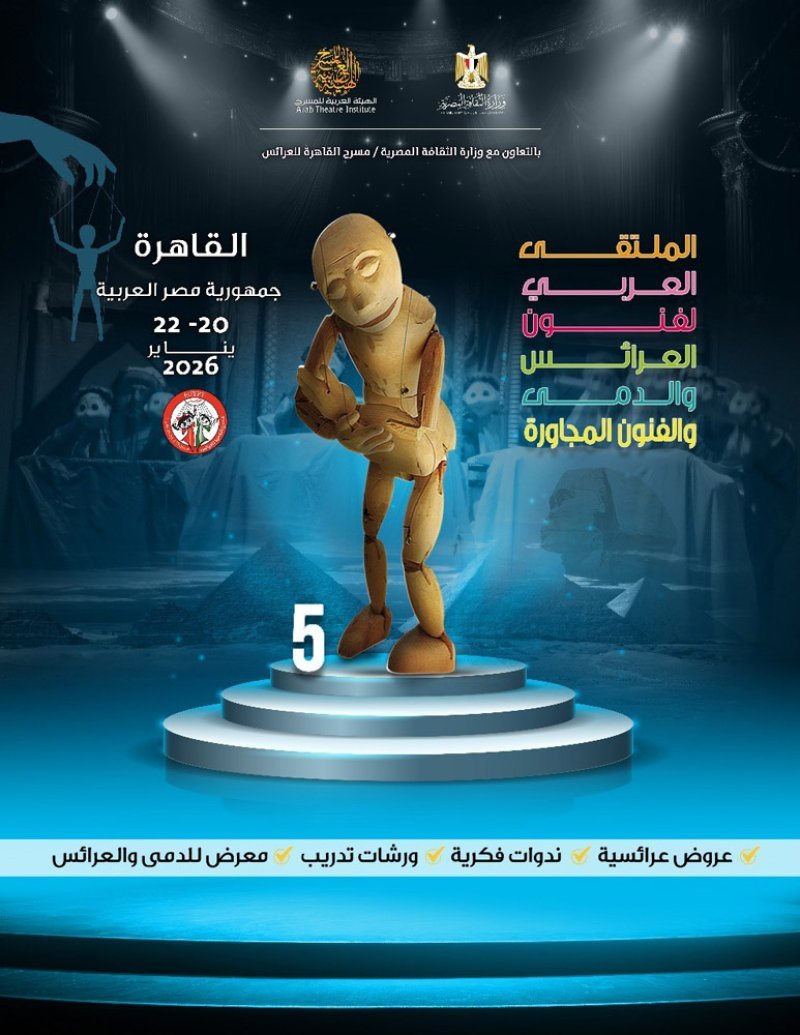 ضمن التعاون المثمر والحيوي بين وزارة الثقافة في جمهورية مصر العربية والهيئة العربية للمسرح، سَتُنظم الدورة الخامسة من الملتقى العربي لفنون العرائس والدمى والفنون المجاورة، بالتعاون والشراكة مع مسرح القاهرة للعرائس في الفترة من 20 إلى 22 يناير 2026، بعد انتهاء فعاليات مهرجان المسرح العربي بدورته السادسة عشرة والتي تنظمها في القاهرة بالتعاون مع وزارة الثقافة بجمهورية مصر العربية في الفترة من 10 إلى 16 يناير 2026.