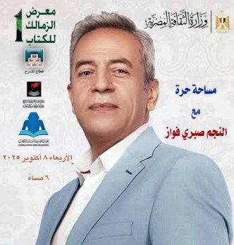 برعاية الدكتور أحمد فؤاد هنو وزير الثقافة؛ وضمن فعاليات معرض الزمالك الأول للكتاب الذي ينظمه المركز القومي للمسرح والموسيقى والفنون الشعبية، بالتعاون مع الهيئة المصرية العامة للكتاب، وتحت عنوان (مساحة حرة) يتحدث الفنان القدير صبري فواز؛ الساعة السادسة مساء اليوم الأربعاء ٨ أكتوبر ٢٠٢٥م؛ في لقاء مفتوح، وذلك بمقر المركز القومي للمسرح والموسيقى والفنون الشعبية الكائن ب٩ش حسن صبري بالزمالك.