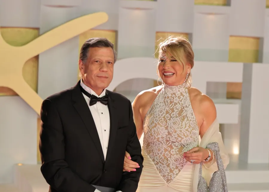خلال حفل افتتاح الدورة الثامنة من مهرجان الجونة، تألقت الدغيدي بإطلالة ناعمة بفستان أبيض من الساتان، بينما رافقها زوجها أحمد عبد المنعم، الذي بدا واضحًا عليه الانسجام والتقدير لزوجته.