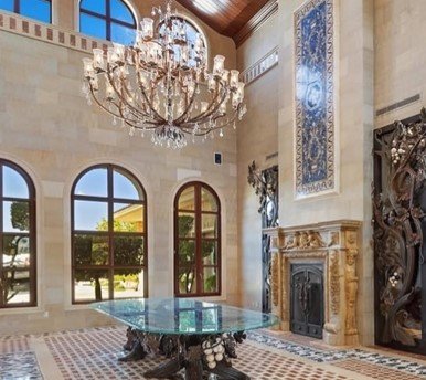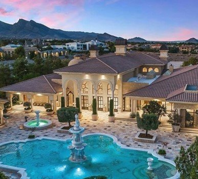 تم بناء القصر عام 2005 بتكلفة وصلت إلى 20 مليون دولار، مستوحى من العمارة الأوروبية، ويضم مساحة واسعة تصل إلى 17,600 قدم مربعة، مع سقوف شاهقة بارتفاع 30 قدمًا تمنح المكان إحساسًا ملكيًا فخمًا. القصر محاط بحدائق خضراء ونوافير مياه راقصة تضفي عليه طابع الفخامة الأوروبية.